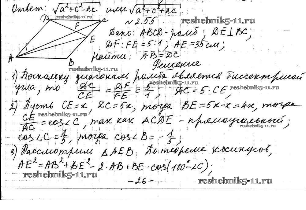 Готовая домашняя работа с ответами по Геометрии за 9 класс Мерзляк, Поляков Учебник Углубленный уровень Вентана-граф 2019 ФГОС - §2 2.55