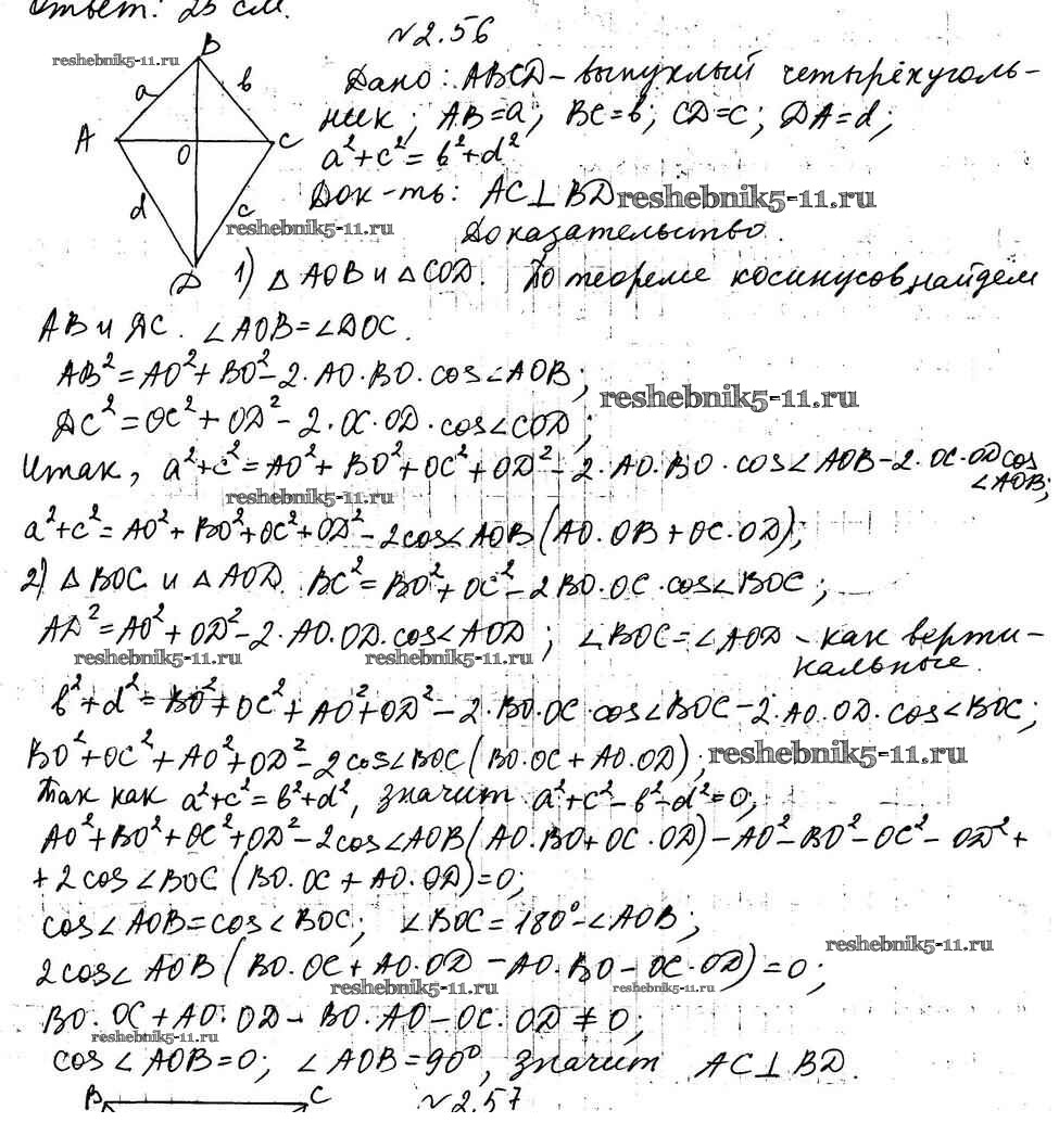 Готовая домашняя работа с ответами по Геометрии за 9 класс Мерзляк, Поляков Учебник Углубленный уровень Вентана-граф 2019 ФГОС - §2 2.56
