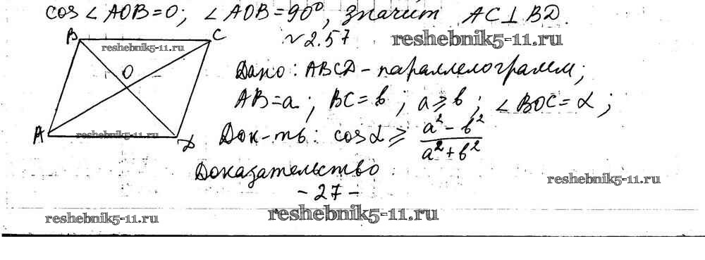 Готовая домашняя работа с ответами по Геометрии за 9 класс Мерзляк, Поляков Учебник Углубленный уровень Вентана-граф 2019 ФГОС - §2 2.57
