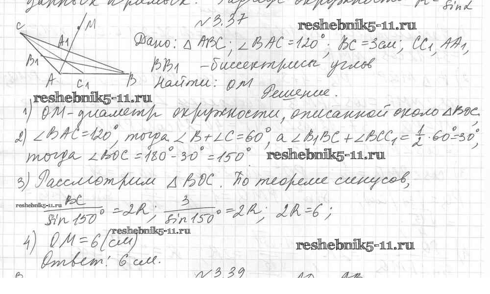 Готовая домашняя работа с ответами по Геометрии за 9 класс Мерзляк, Поляков Учебник Углубленный уровень Вентана-граф 2019 ФГОС - §3 3.37