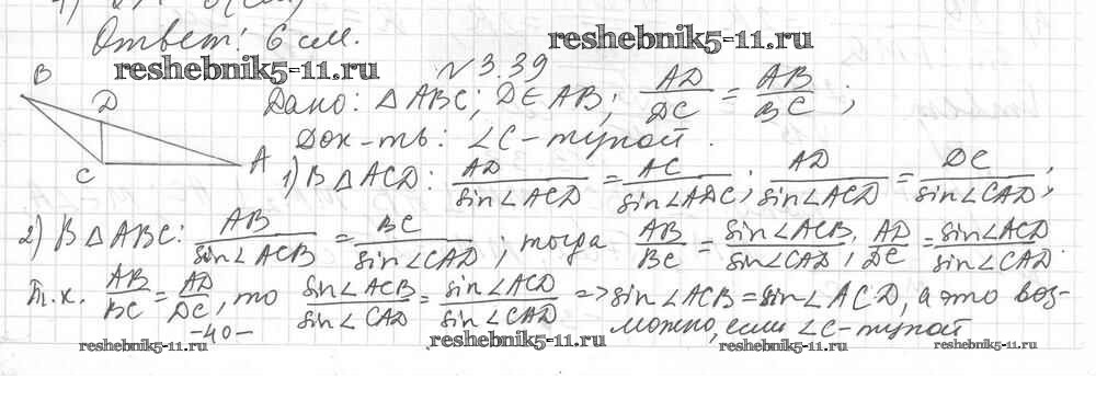 Готовая домашняя работа с ответами по Геометрии за 9 класс Мерзляк, Поляков Учебник Углубленный уровень Вентана-граф 2019 ФГОС - §3 3.39
