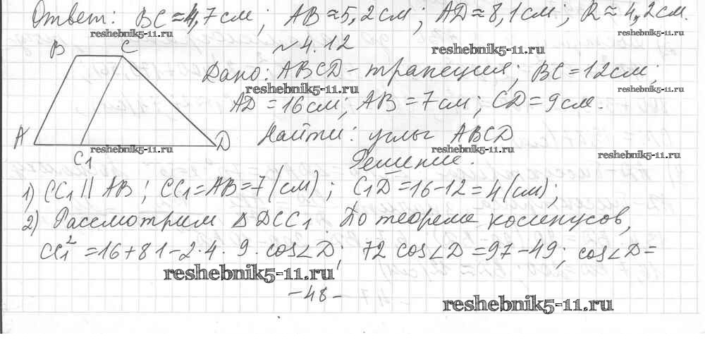 Геометрия за 9 класс Мерзляк Учебник Углубленный уровень Вентана-граф §4 4.12