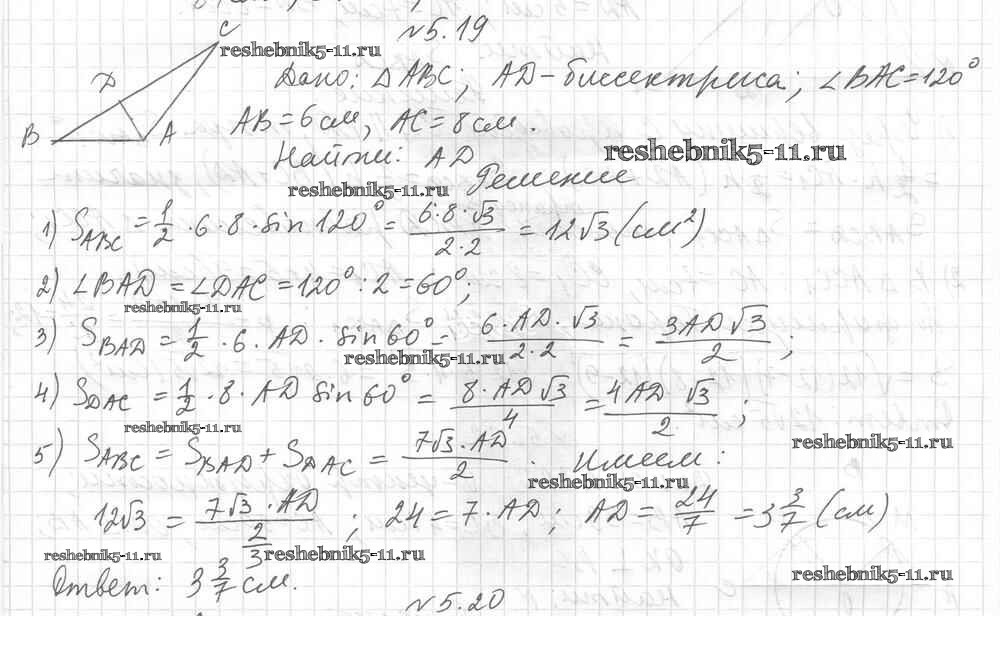 Готовая домашняя работа с ответами по Геометрии за 9 класс Мерзляк, Поляков Учебник Углубленный уровень Вентана-граф 2019 ФГОС - §5 5.19