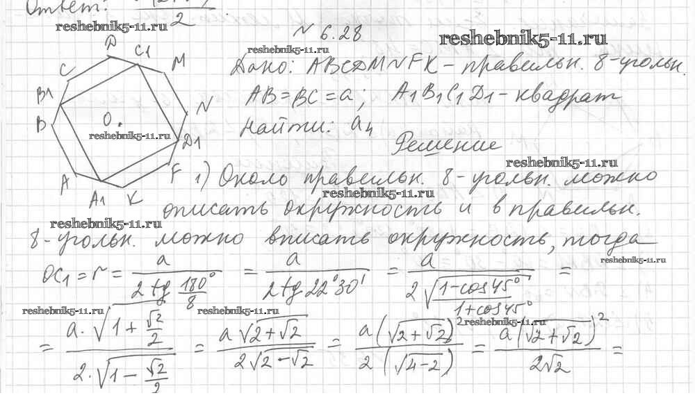 Готовая домашняя работа с ответами по Геометрии за 9 класс Мерзляк, Поляков Учебник Углубленный уровень Вентана-граф 2019 ФГОС - §6 6.28