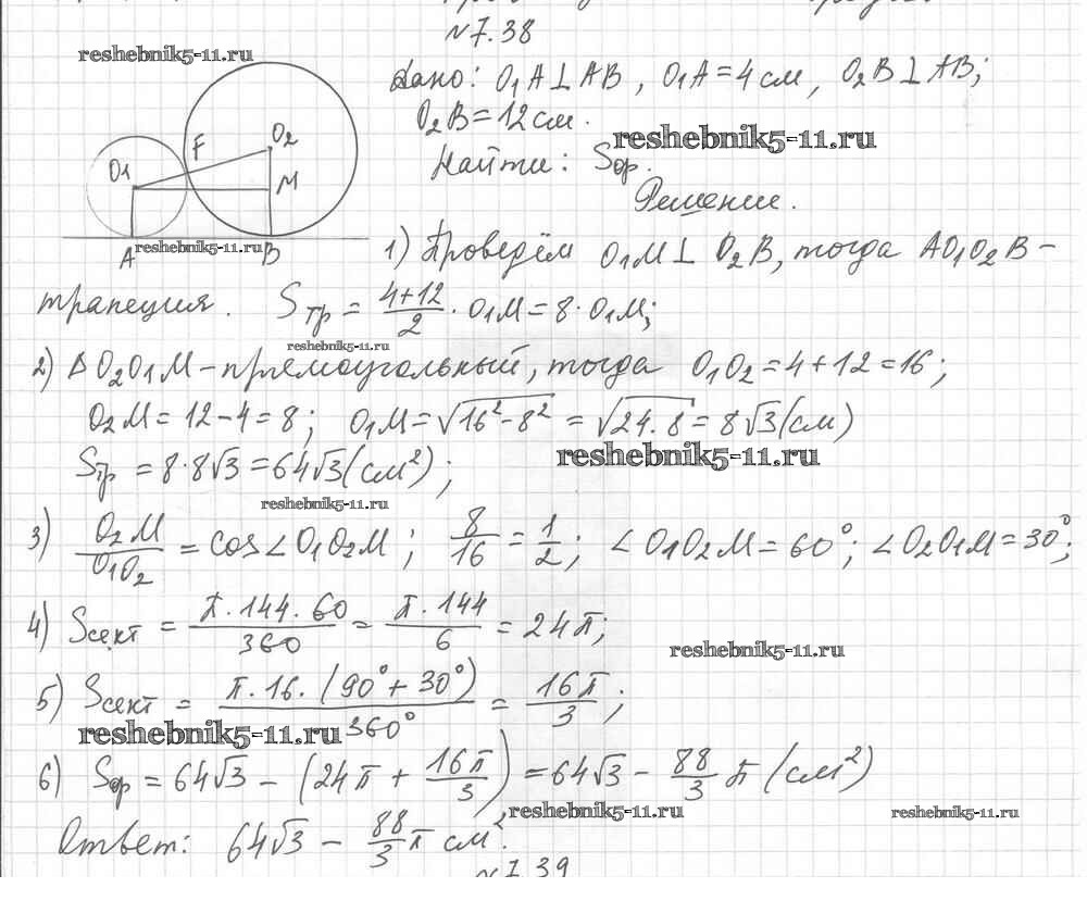 Готовая домашняя работа с ответами по Геометрии за 9 класс Мерзляк, Поляков Учебник Углубленный уровень Вентана-граф 2019 ФГОС - §7 7.38