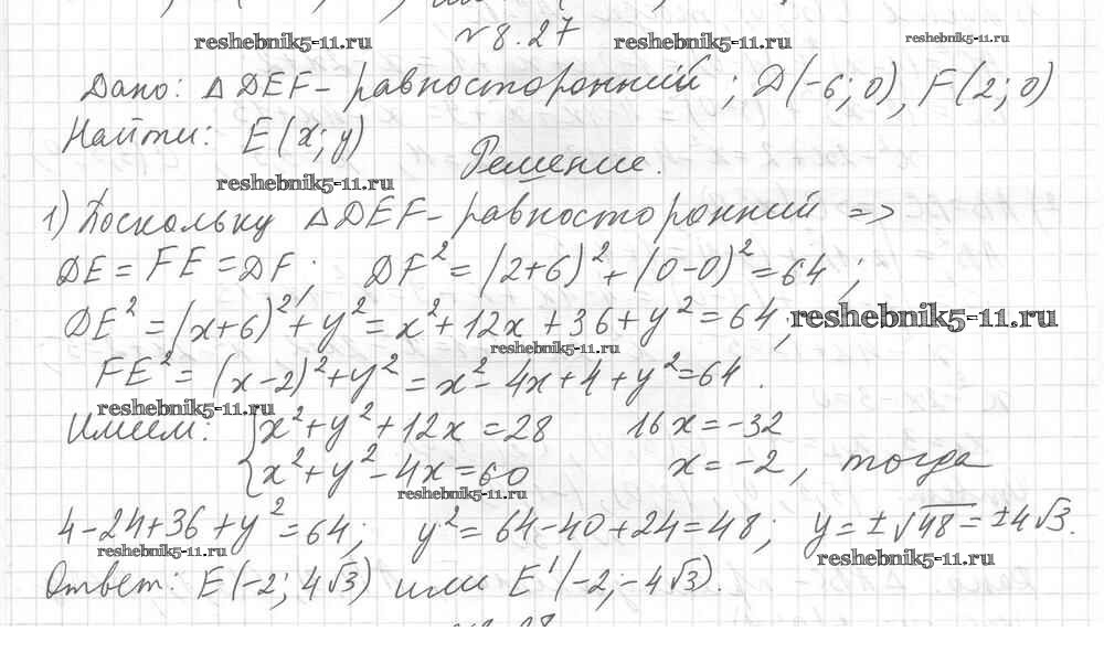 Готовая домашняя работа с ответами по Геометрии за 9 класс Мерзляк, Поляков Учебник Углубленный уровень Вентана-граф 2019 ФГОС - §8 8.27