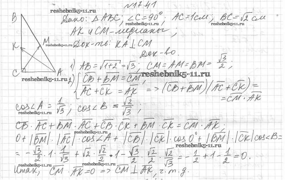 Готовая домашняя работа с ответами по Геометрии за 9 класс Мерзляк, Поляков Учебник Углубленный уровень Вентана-граф 2019 ФГОС - §17 17.41