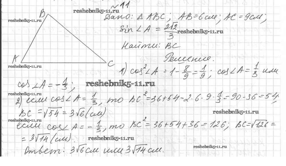 Готовая домашняя работа с ответами по Геометрии за 9 класс Мерзляк, Полонский, Рабинович Дидактические материалы Алгоритм успеха Вентана-граф 2017 ФГОС - Вариант 1. Упражнения 11