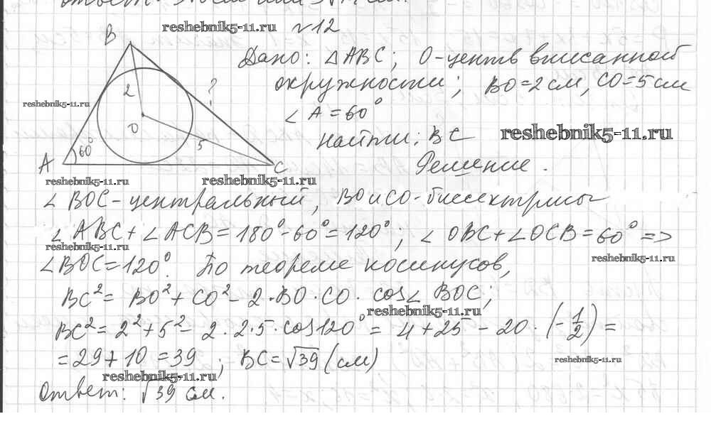 Геометрия за 9 класс Мерзляк Дидактические материалы Алгоритм успеха Вентана-граф вариант 1. упражнение 12