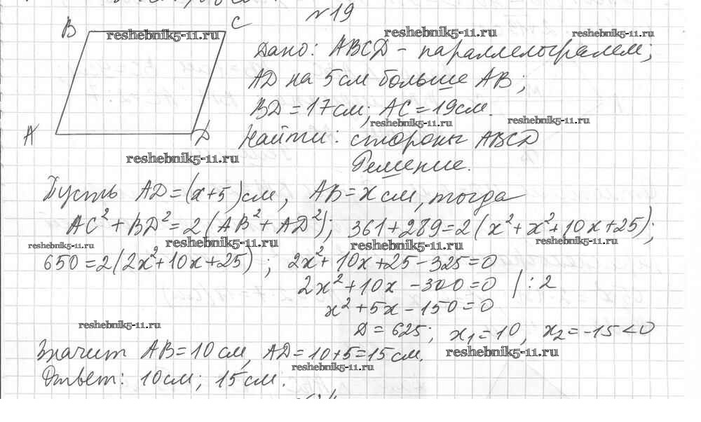 Готовая домашняя работа с ответами по Геометрии за 9 класс Мерзляк, Полонский, Рабинович Дидактические материалы Алгоритм успеха Вентана-граф 2017 ФГОС - Вариант 1. Упражнения 19