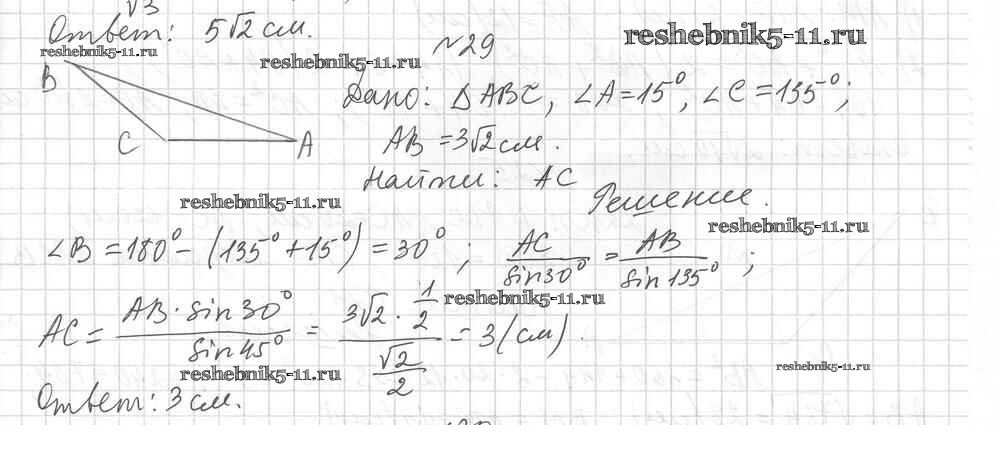 Готовая домашняя работа с ответами по Геометрии за 9 класс Мерзляк, Полонский, Рабинович Дидактические материалы Алгоритм успеха Вентана-граф 2017 ФГОС - Вариант 1. Упражнения 29
