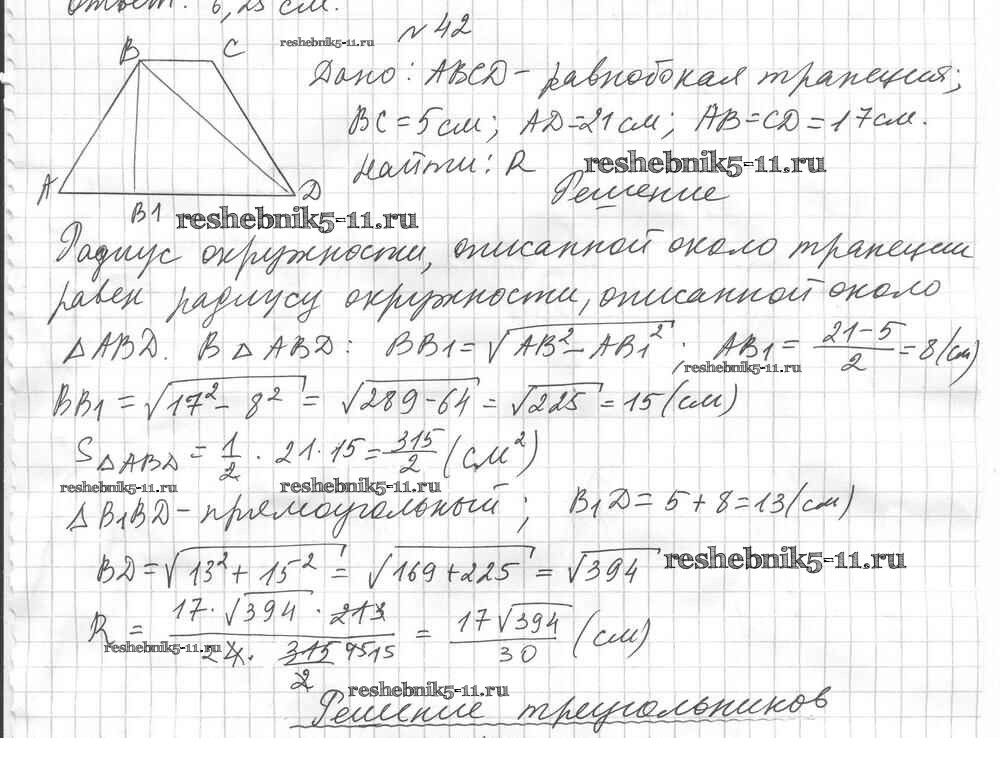 Готовая домашняя работа с ответами по Геометрии за 9 класс Мерзляк, Полонский, Рабинович Дидактические материалы Алгоритм успеха Вентана-граф 2017 ФГОС - Вариант 1. Упражнения 42