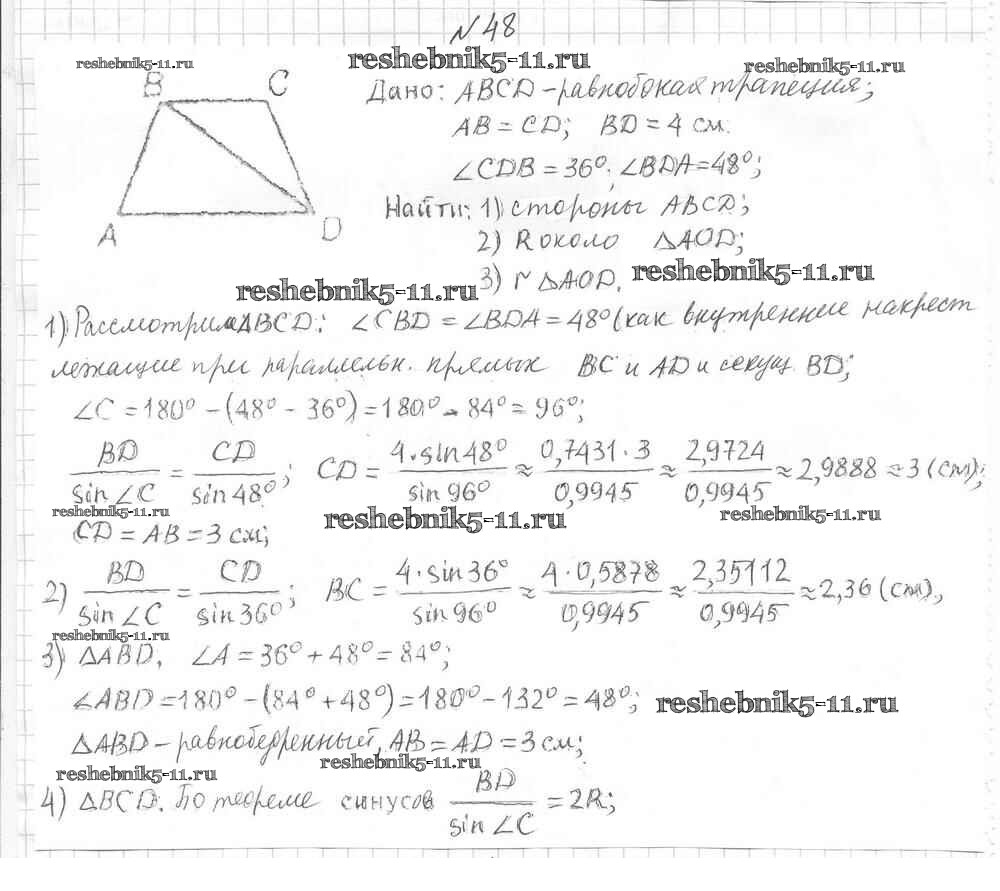 Готовая домашняя работа с ответами по Геометрии за 9 класс Мерзляк, Полонский, Рабинович Дидактические материалы Алгоритм успеха Вентана-граф 2017 ФГОС - Вариант 1. Упражнения 48