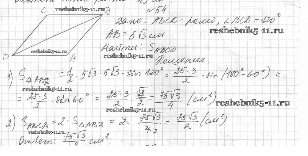 Готовая домашняя работа с ответами по Геометрии за 9 класс Мерзляк, Полонский, Рабинович Дидактические материалы Алгоритм успеха Вентана-граф 2017 ФГОС - Вариант 1. Упражнения 54