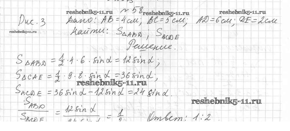 Готовая домашняя работа с ответами по Геометрии за 9 класс Мерзляк, Полонский, Рабинович Дидактические материалы Алгоритм успеха Вентана-граф 2017 ФГОС - Вариант 1. Упражнения 58