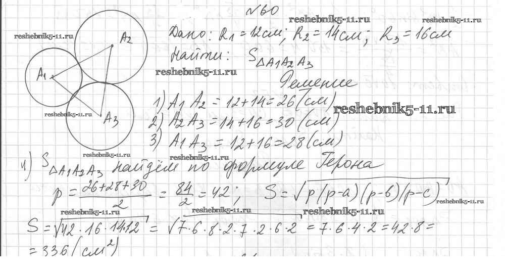 Готовая домашняя работа с ответами по Геометрии за 9 класс Мерзляк, Полонский, Рабинович Дидактические материалы Алгоритм успеха Вентана-граф 2017 ФГОС - Вариант 1. Упражнения 60