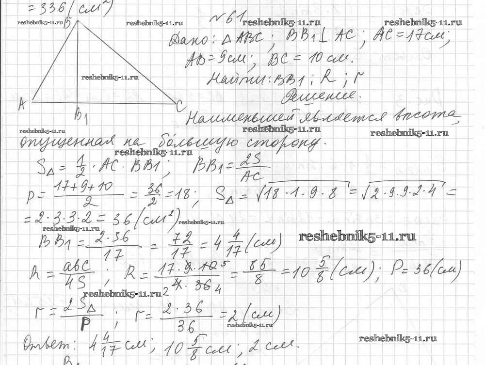 Готовая домашняя работа с ответами по Геометрии за 9 класс Мерзляк, Полонский, Рабинович Дидактические материалы Алгоритм успеха Вентана-граф 2017 ФГОС - Вариант 1. Упражнения 61