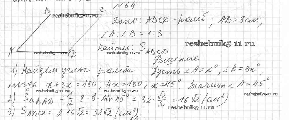 Готовая домашняя работа с ответами по Геометрии за 9 класс Мерзляк, Полонский, Рабинович Дидактические материалы Алгоритм успеха Вентана-граф 2017 ФГОС - Вариант 1. Упражнения 64