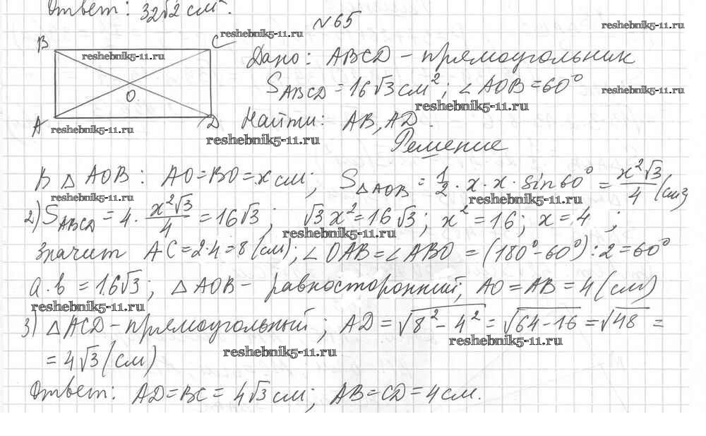 Готовая домашняя работа с ответами по Геометрии за 9 класс Мерзляк, Полонский, Рабинович Дидактические материалы Алгоритм успеха Вентана-граф 2017 ФГОС - Вариант 1. Упражнения 65