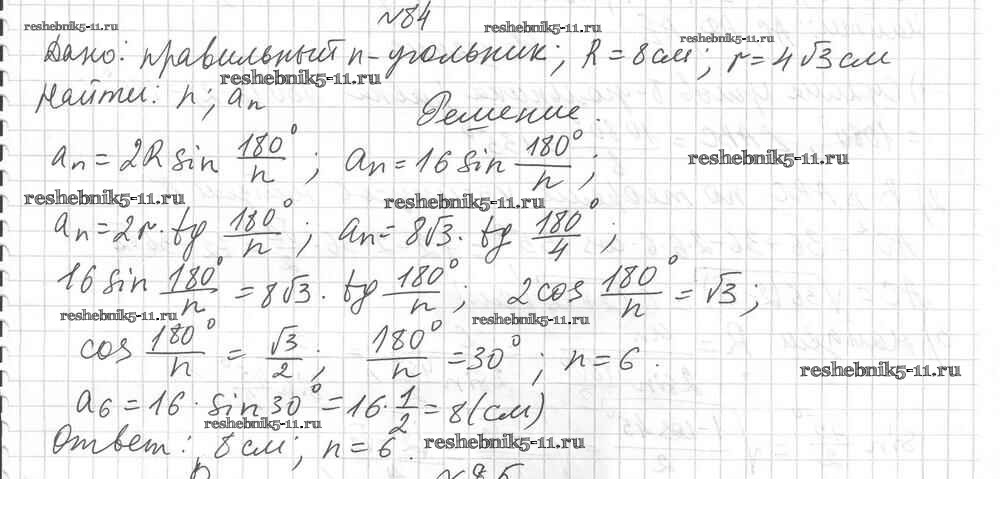 Готовая домашняя работа с ответами по Геометрии за 9 класс Мерзляк, Полонский, Рабинович Дидактические материалы Алгоритм успеха Вентана-граф 2017 ФГОС - Вариант 1. Упражнения 84