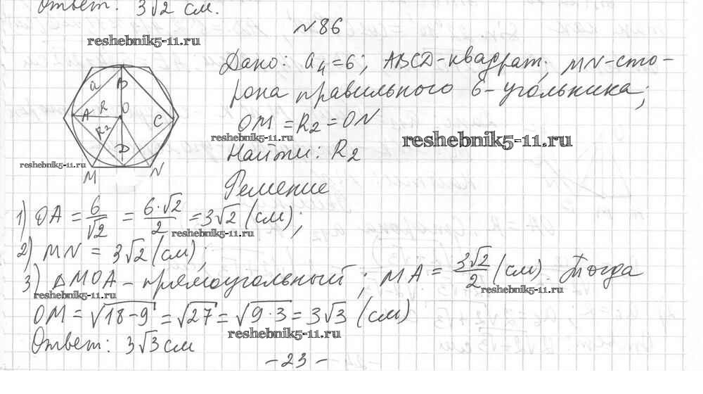 Готовая домашняя работа с ответами по Геометрии за 9 класс Мерзляк, Полонский, Рабинович Дидактические материалы Алгоритм успеха Вентана-граф 2017 ФГОС - Вариант 1. Упражнения 86