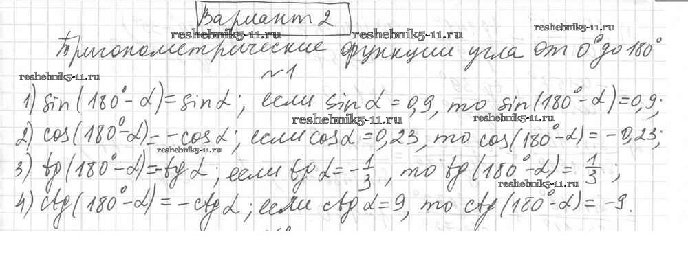 Готовая домашняя работа с ответами по Геометрии за 9 класс Мерзляк, Полонский, Рабинович Дидактические материалы Алгоритм успеха Вентана-граф 2017 ФГОС - Вариант 2. Упражнения 1