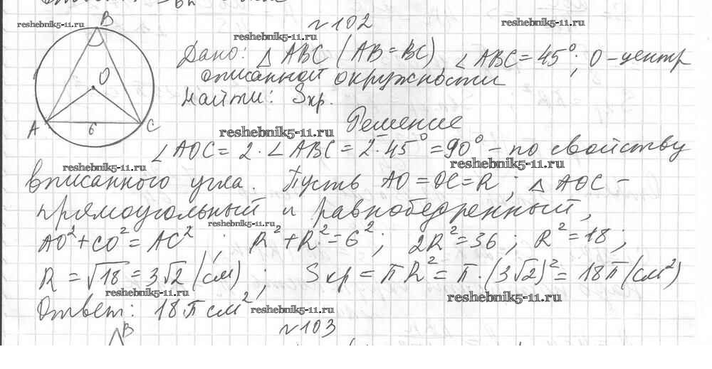 Готовая домашняя работа с ответами по Геометрии за 9 класс Мерзляк, Полонский, Рабинович Дидактические материалы Алгоритм успеха Вентана-граф 2017 ФГОС - Вариант 2. Упражнения 102