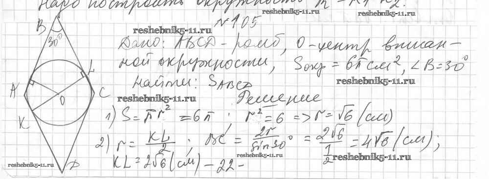 Готовая домашняя работа с ответами по Геометрии за 9 класс Мерзляк, Полонский, Рабинович Дидактические материалы Алгоритм успеха Вентана-граф 2017 ФГОС - Вариант 2. Упражнения 105