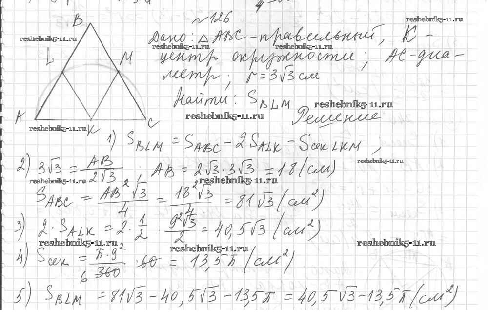 Готовая домашняя работа с ответами по Геометрии за 9 класс Мерзляк, Полонский, Рабинович Дидактические материалы Алгоритм успеха Вентана-граф 2017 ФГОС - Вариант 2. Упражнения 126