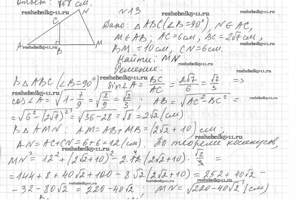 Геометрия за 9 класс Мерзляк Дидактические материалы Алгоритм успеха Вентана-граф вариант 2. упражнение 13
