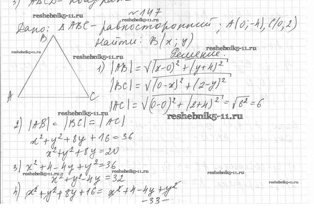 Готовая домашняя работа с ответами по Геометрии за 9 класс Мерзляк, Полонский, Рабинович Дидактические материалы Алгоритм успеха Вентана-граф 2017 ФГОС - Вариант 2. Упражнения 147