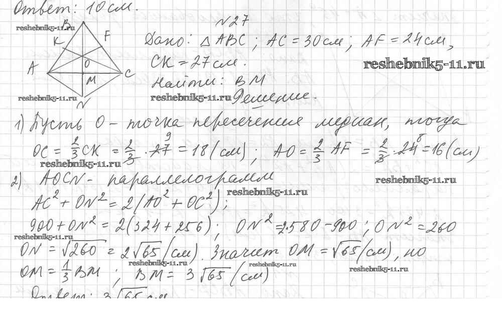 Готовая домашняя работа с ответами по Геометрии за 9 класс Мерзляк, Полонский, Рабинович Дидактические материалы Алгоритм успеха Вентана-граф 2017 ФГОС - Вариант 2. Упражнения 27