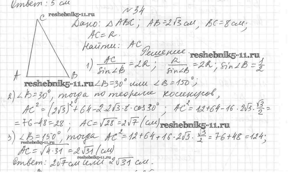 Готовая домашняя работа с ответами по Геометрии за 9 класс Мерзляк, Полонский, Рабинович Дидактические материалы Алгоритм успеха Вентана-граф 2017 ФГОС - Вариант 2. Упражнения 34