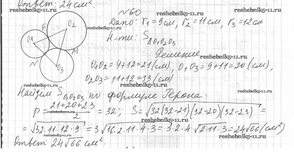 Готовая домашняя работа с ответами по Геометрии за 9 класс Мерзляк, Полонский, Рабинович Дидактические материалы Алгоритм успеха Вентана-граф 2017 ФГОС - Вариант 2. Упражнения 60