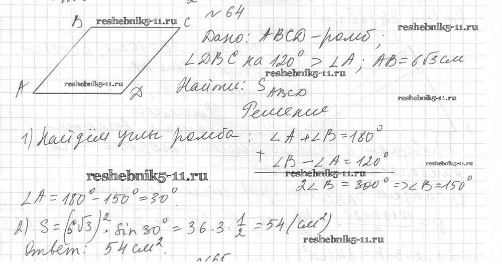 Готовая домашняя работа с ответами по Геометрии за 9 класс Мерзляк, Полонский, Рабинович Дидактические материалы Алгоритм успеха Вентана-граф 2017 ФГОС - Вариант 2. Упражнения 64