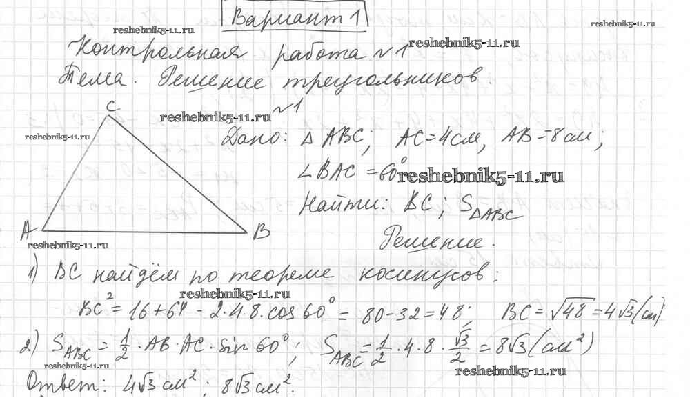 Готовая домашняя работа с ответами по Геометрии за 9 класс Мерзляк, Полонский, Рабинович Дидактические материалы Алгоритм успеха Вентана-граф 2017 ФГОС - КР-1. Варианты 1