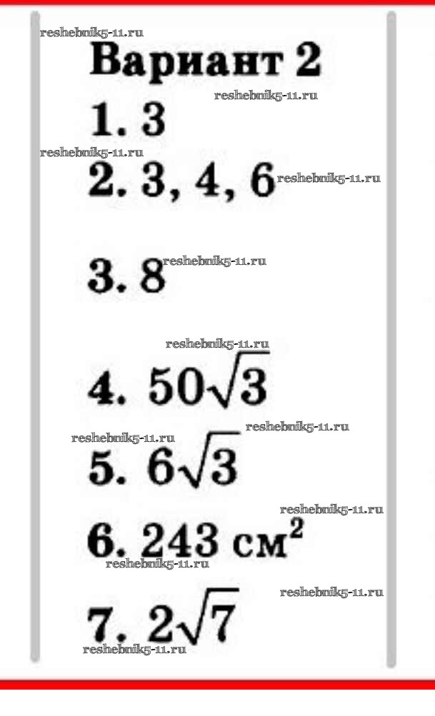 Готовая домашняя работа с ответами по Геометрии за 9 класс Мельникова Контрольные работы УМК Экзамен 2019 ФГОС - Контрольная работа 6 (Варианты) 2