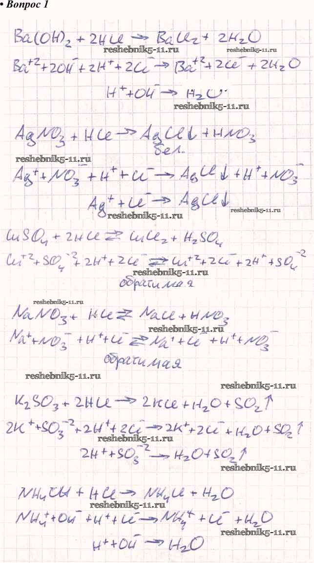 Готовая домашняя работа с ответами по Химии за 9 класс Кузнецова, Титова, Гара Учебник Алгоритм успеха Вентана-граф 2019 ФГОС - Вопросы 1