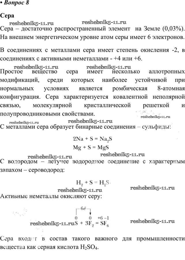 Готовая домашняя работа с ответами по Химии за 9 класс Кузнецова, Титова, Гара Учебник Алгоритм успеха Вентана-граф 2019 ФГОС - Вопросы 8