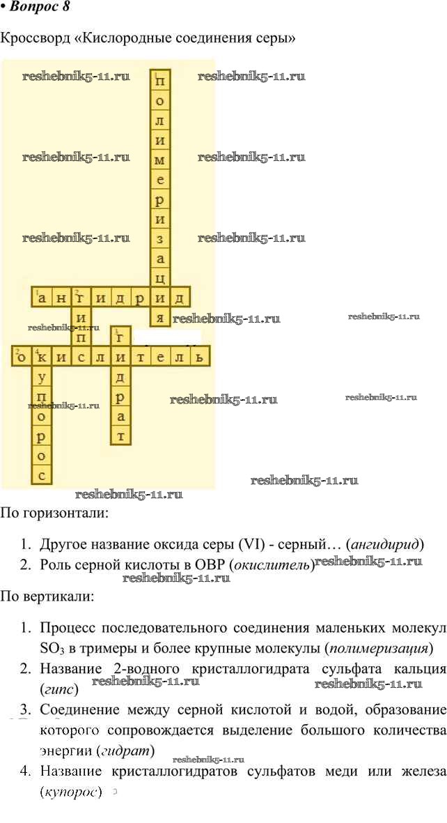 Готовая домашняя работа с ответами по Химии за 9 класс Кузнецова, Титова, Гара Учебник Алгоритм успеха Вентана-граф 2019 ФГОС - Вопросы 8