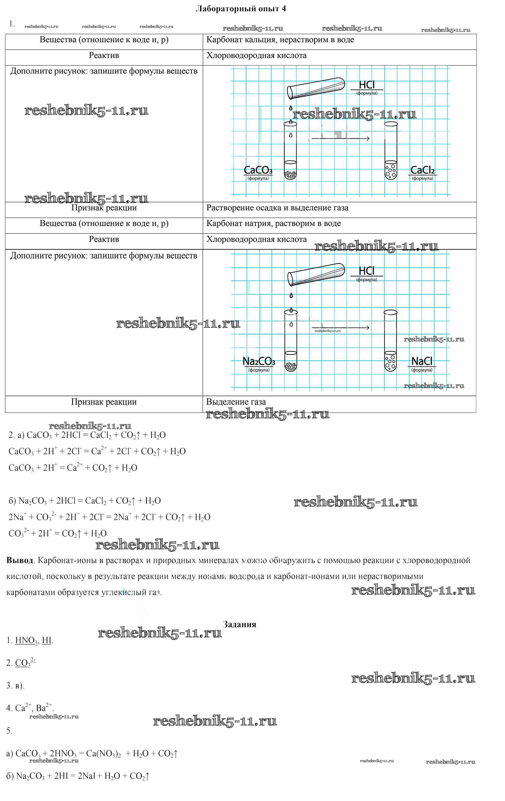 Готовая домашняя работа с ответами по Химии за 9 класс Сечко Тетрадь для практических работ и лабораторных опытов Аверсэв 2016 - Лабораторные опыты 4