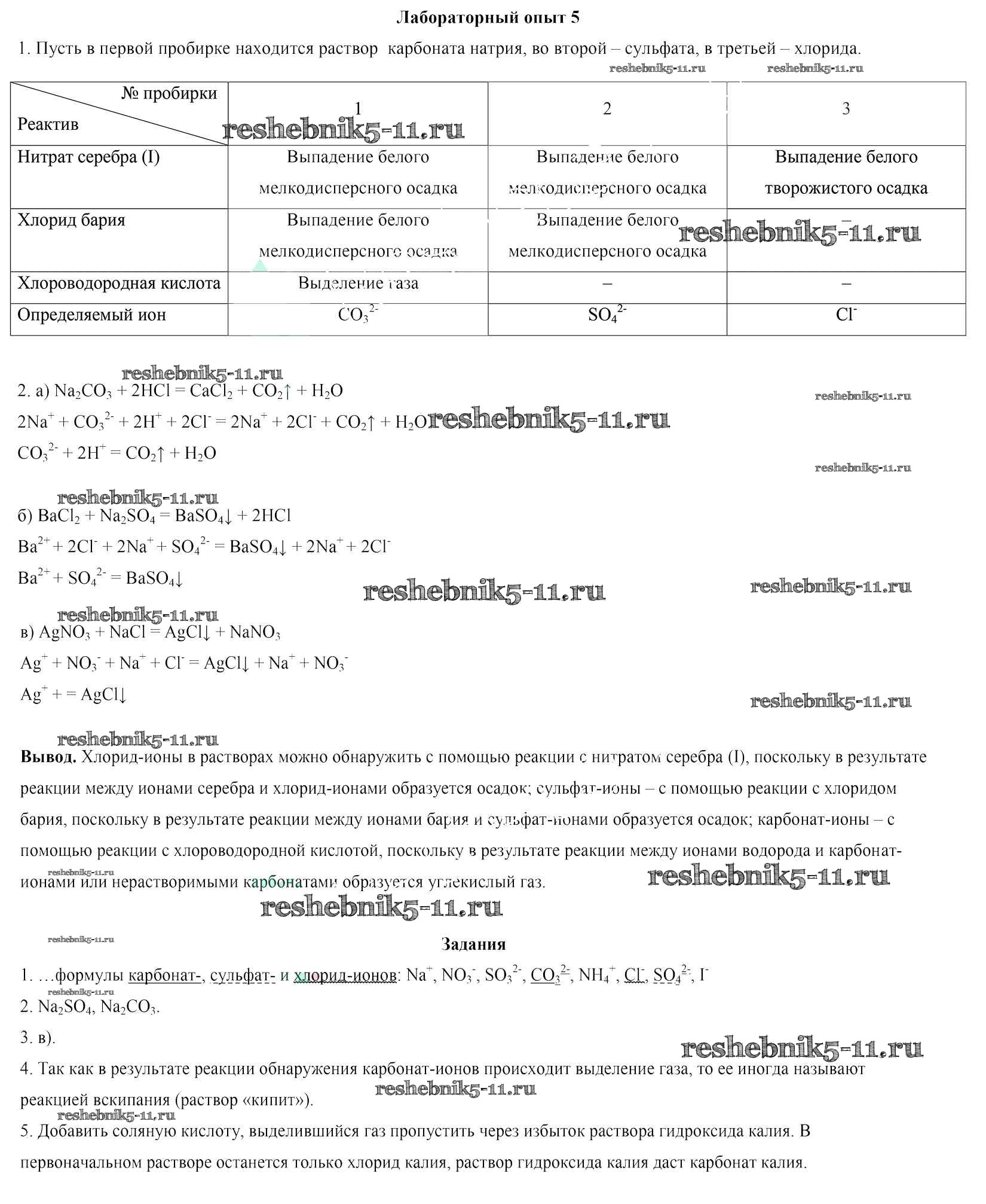 Готовая домашняя работа с ответами по Химии за 9 класс Сечко Тетрадь для практических работ и лабораторных опытов Аверсэв 2016 - Лабораторные опыты 5