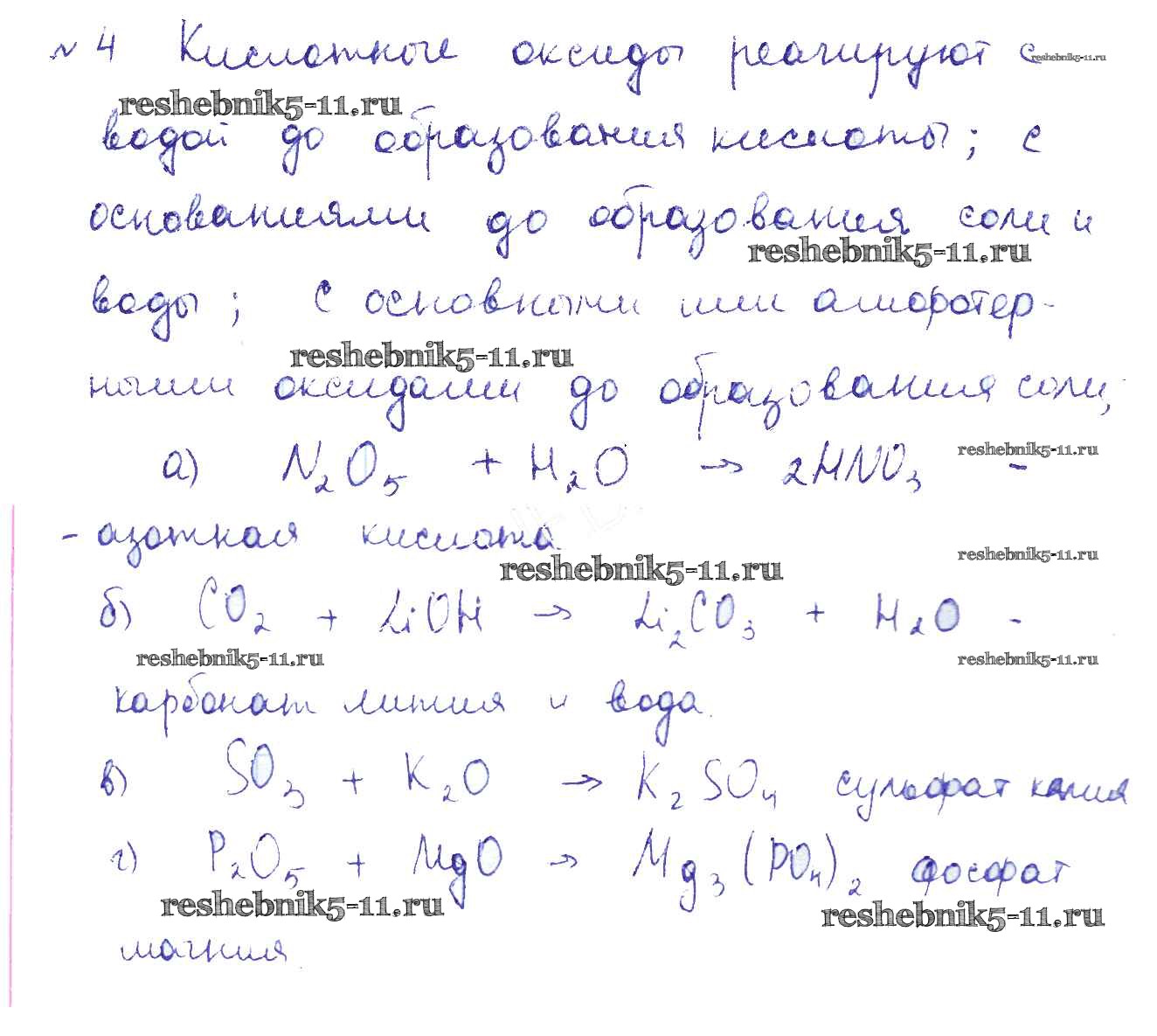 Готовая домашняя работа с ответами по Химии за 9 класс Шиманович, Василевская, Красицкий, Сечко Учебник Народная асвета 2019 - §1. Основные классы неорганических веществ 4