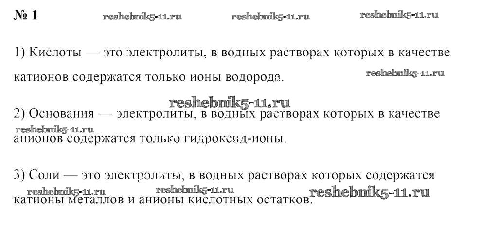 Готовая домашняя работа с ответами по Химии за 9 класс Шиманович, Василевская, Красицкий, Сечко Учебник Народная асвета 2019 - §11. Электролитическая диссоциация кислот, оснований и солей 1