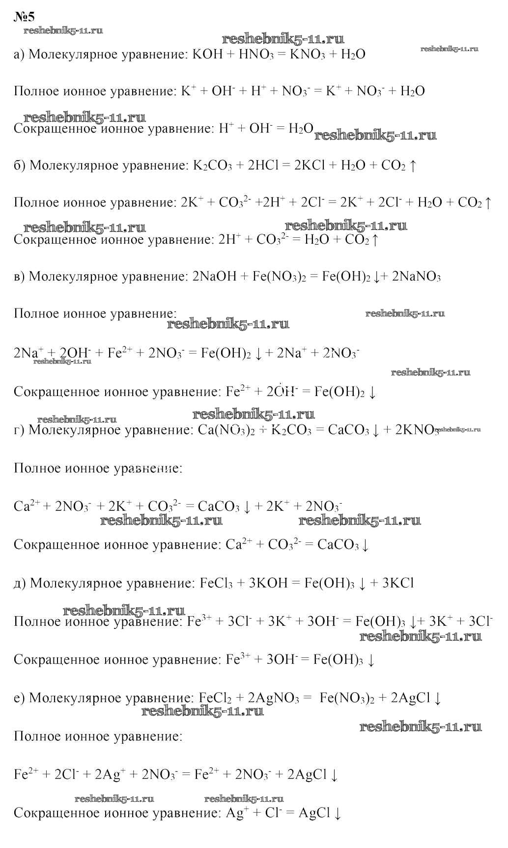 Готовая домашняя работа с ответами по Химии за 9 класс Шиманович, Василевская, Красицкий, Сечко Учебник Народная асвета 2019 - §12. Реакции ионного обмена 5