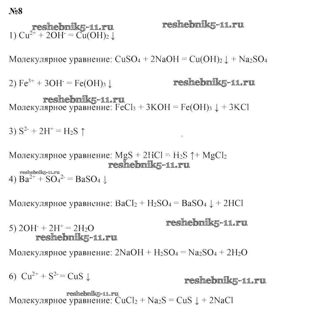 Готовая домашняя работа с ответами по Химии за 9 класс Шиманович, Василевская, Красицкий, Сечко Учебник Народная асвета 2019 - §12. Реакции ионного обмена 8