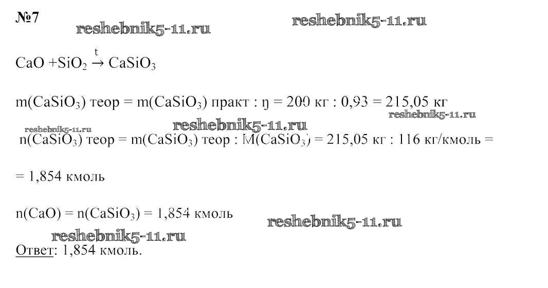 Готовая домашняя работа с ответами по Химии за 9 класс Шиманович, Василевская, Красицкий, Сечко Учебник Народная асвета 2019 - §39. Понятие о выходе продукта химической реакции 7