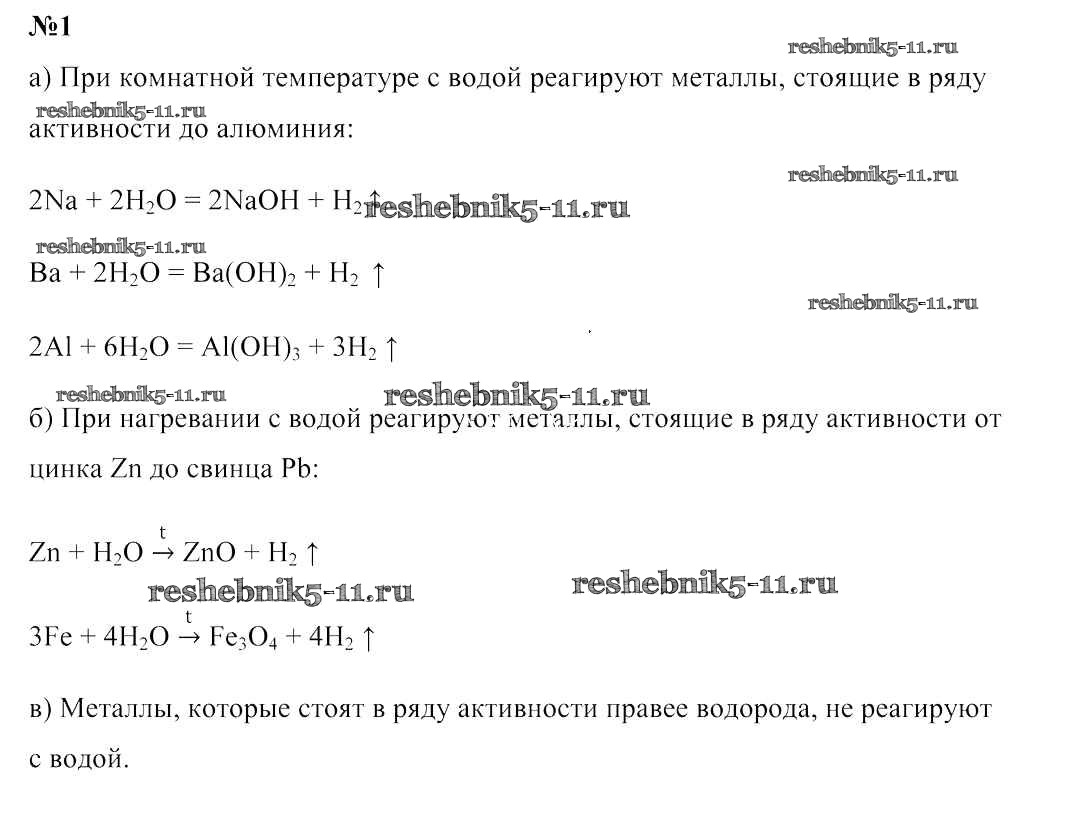 Готовая домашняя работа с ответами по Химии за 9 класс Шиманович, Василевская, Красицкий, Сечко Учебник Народная асвета 2019 - §45. Взаимодействие металлов с водой и растворами солей других металлов 1