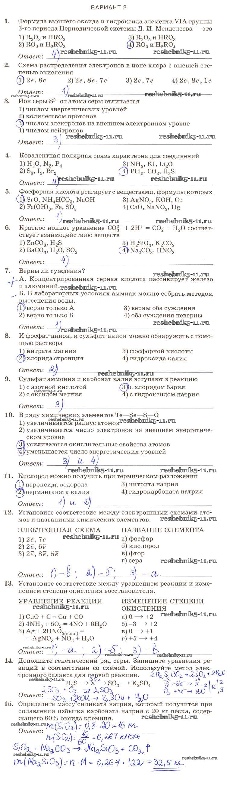 Готовая домашняя работа с ответами по Химии за 9 класс Габриелян, Березкин, Ушакова, Майорова, Кузьмина, Кириллова Контрольные работы Вертикаль Дрофа 2013 ФГОС - КР-3 вариант-2