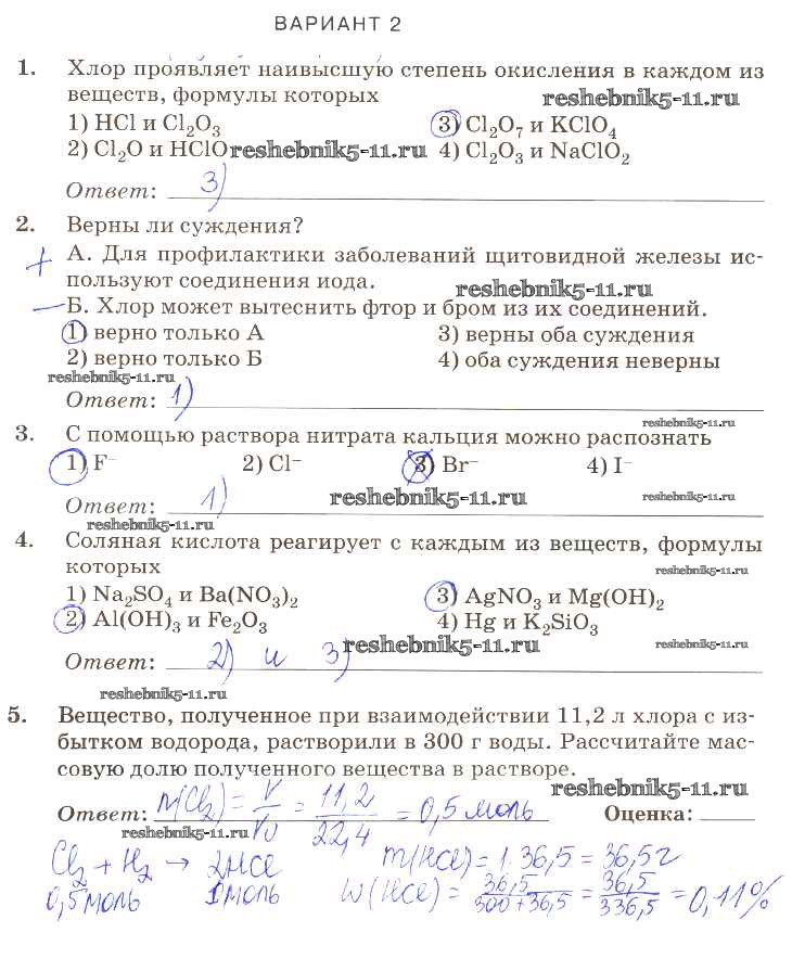 Готовая домашняя работа с ответами по Химии за 9 класс Габриелян, Березкин, Ушакова, Майорова, Кузьмина, Кириллова Контрольные работы Вертикаль Дрофа 2013 ФГОС - ПР-19 вариант-2